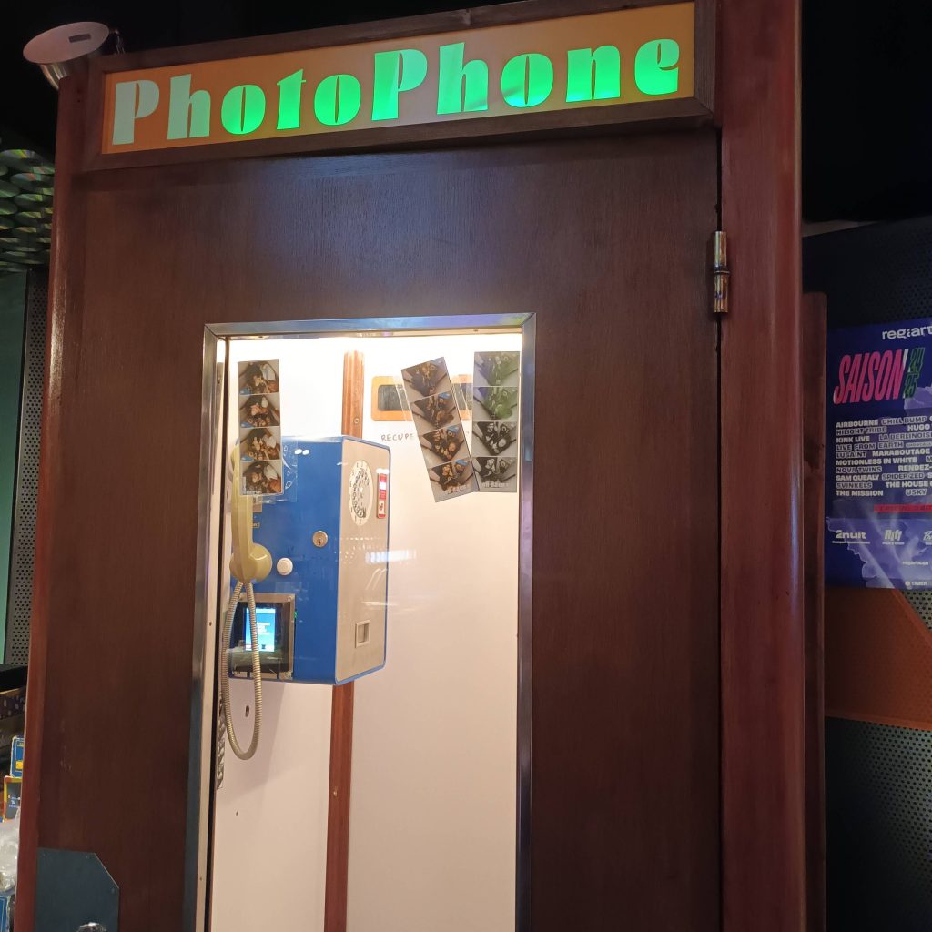 En 2024 est créé le premier Photophone, ouvrant d’autres perspectives que le portrait de face. Deux espaces intimes dans l’espace public réunis: une cabine téléphonique et une cabine photo.