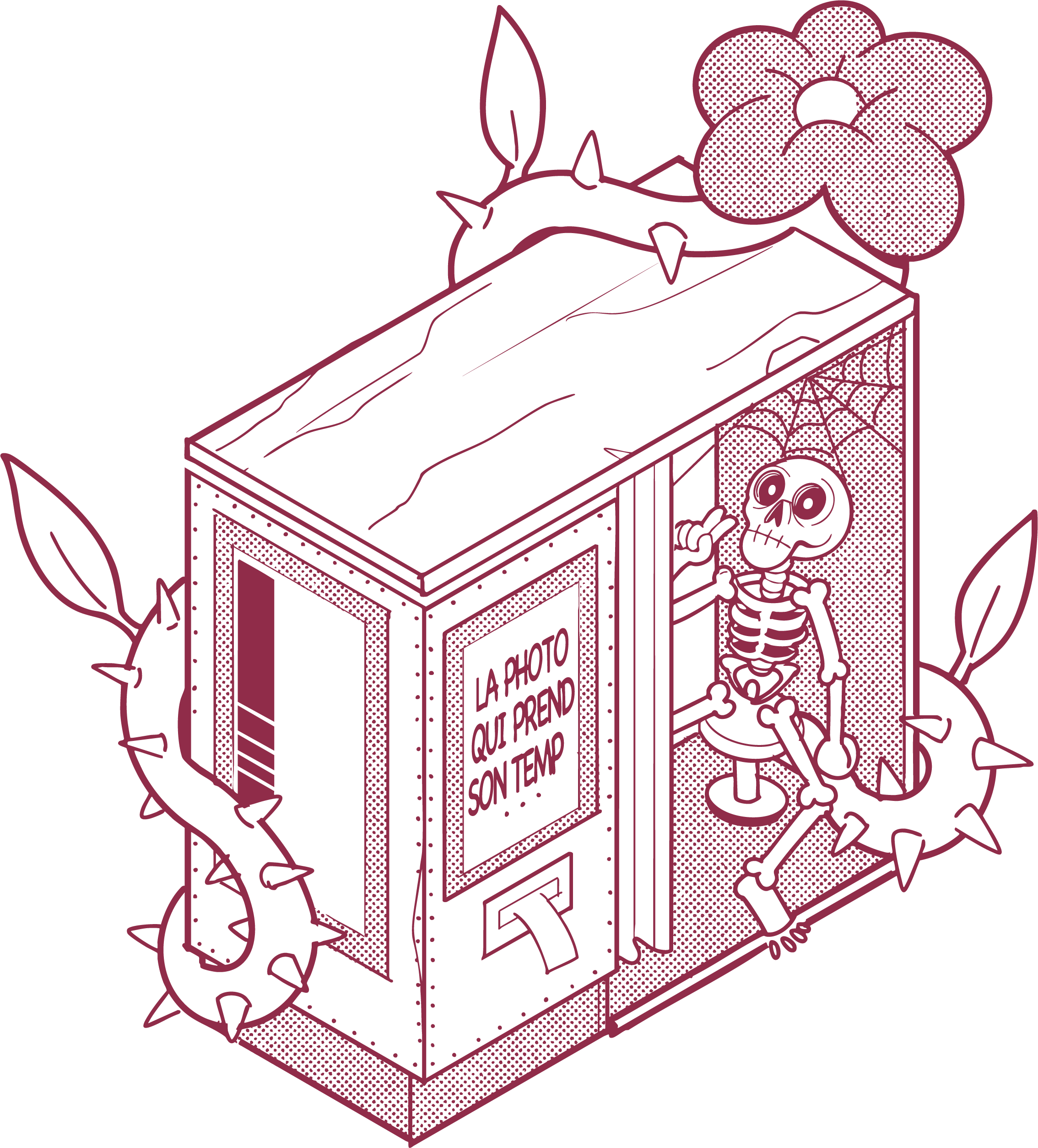 En 2022, nous installons notre première cabine argentique aux Halles 500. Très vite, la guerre en Ukraine provoque l’arrêt de la production du papier pour photomaton par l’unique usine, située en Russie. Contraints et forcés, nous la transformons en numérique. À contre-cœur, mais en découvrant avec surprise que le numérique ouvre de nouvelles possibilités créatives.