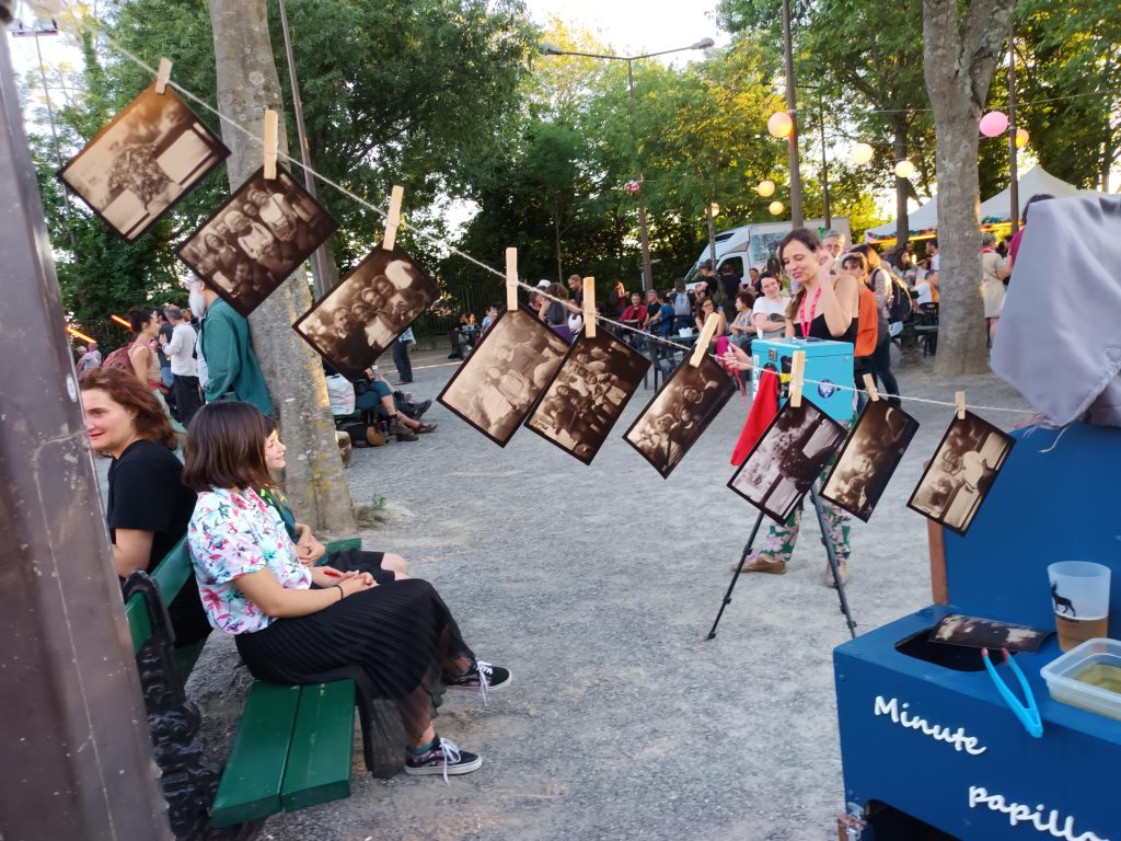 En 2021, je quitte mon poste d’ingénieur en informatique et fonde Minute Papillons avec Maritxu, avec une mission : remettre au goût du jour la photo argentique. Notre premier dispositif, la Carriole Photo, combine l’optique de l’Afghan Box au processus de développement du photomaton. Nous sillonnons les rues, les marchés, les bars, les festivals et même les EHPAD pour partager cette magie.