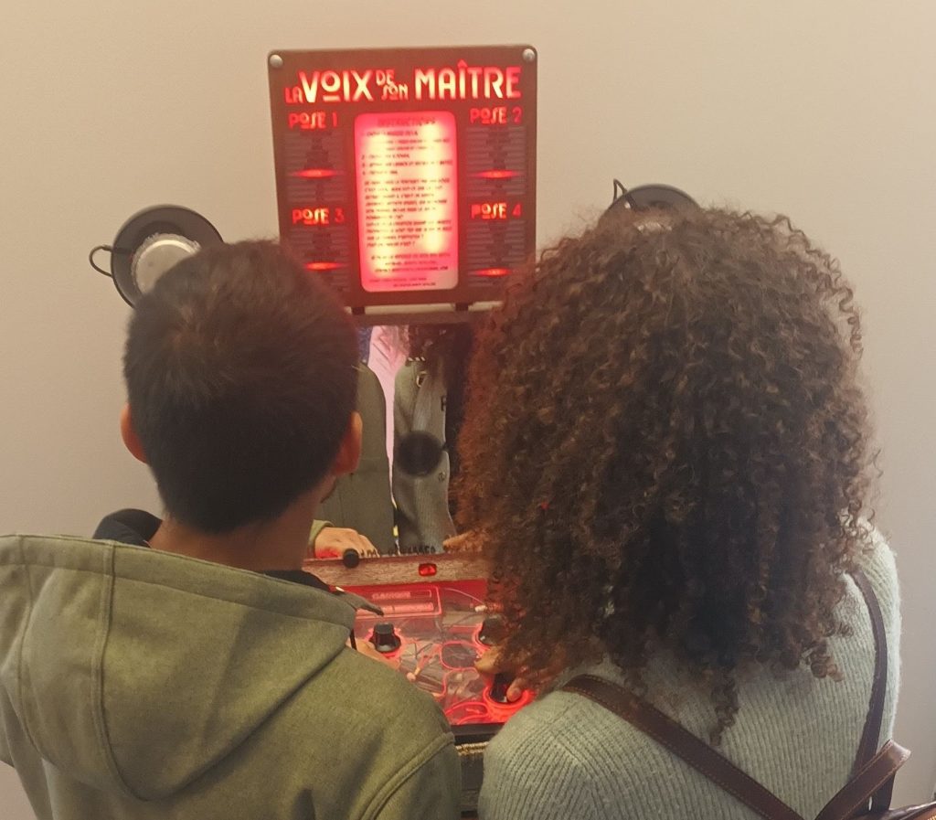 Fin 2023, nous déménageons l’atelier de mon salon pour un véritable espace de travail. Une nouvelle création en collab avec Alex Girard émerge : La Voix de son Maître, explorant les possibilités de l’IA.